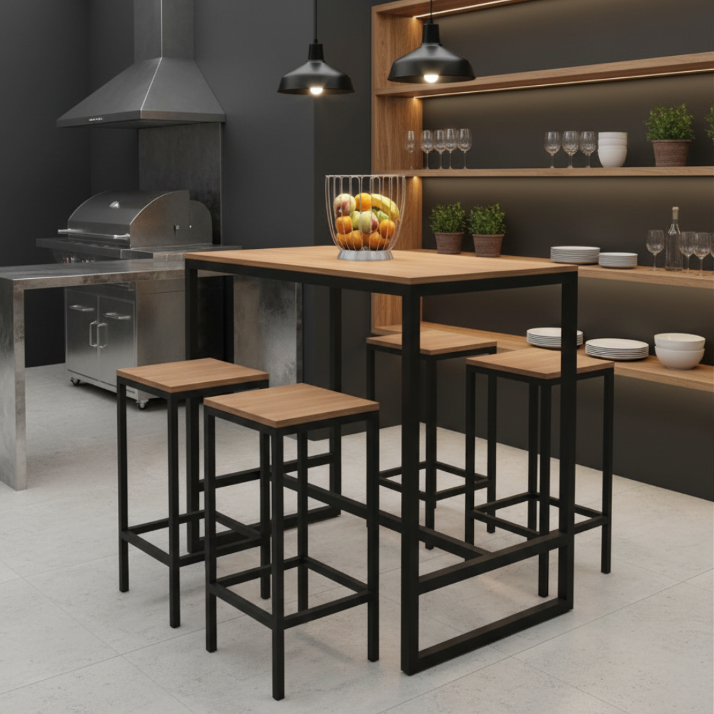 Ideal para espaços gourmet, bares e áreas de convivência, o conjunto Mesa Bistrô + 4 Bancos Altos é perfeito para refeições rápidas, happy hours ou momentos de descontração com amigos e familiares.