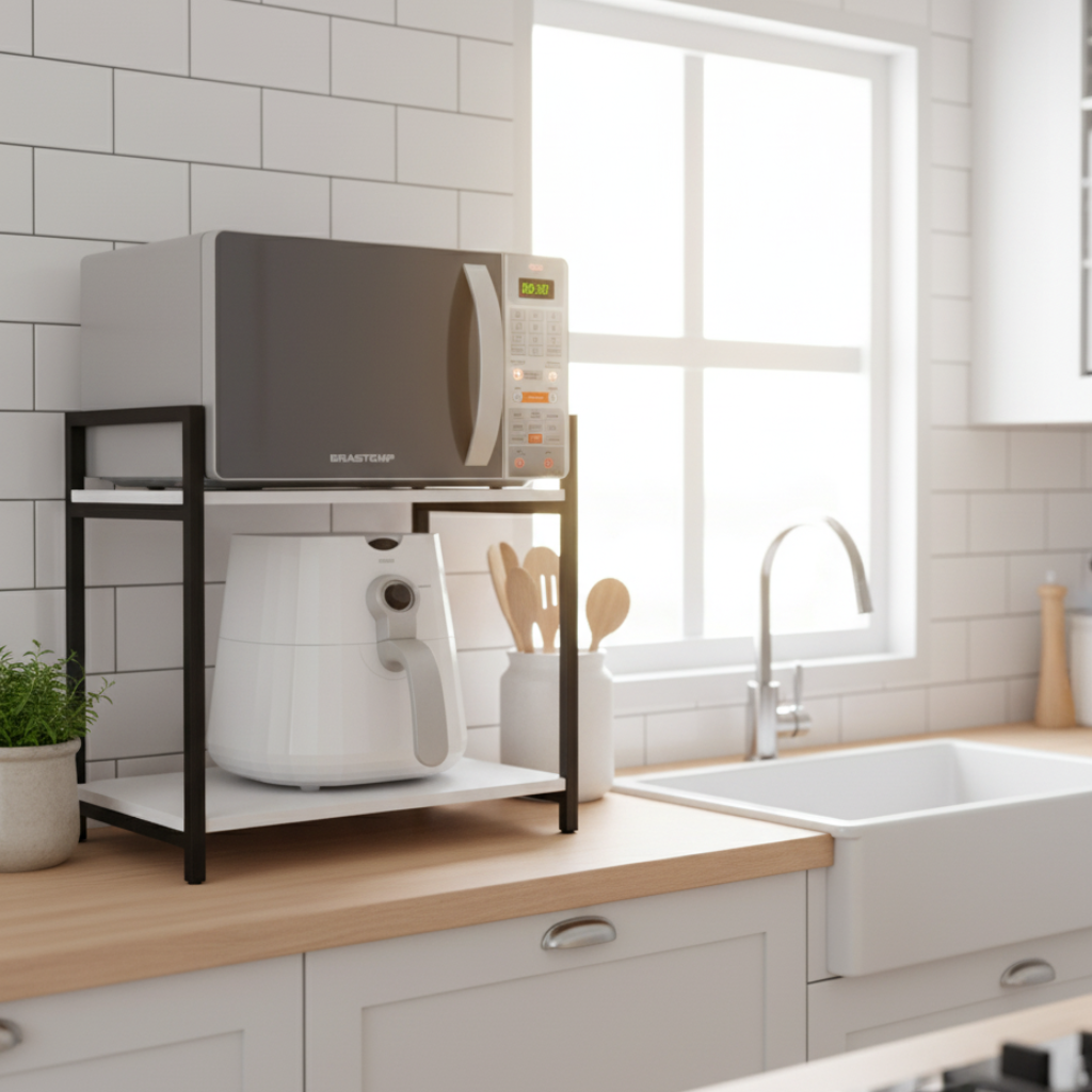 A Prateleira Industrial Nicho Para Micro-ondas é perfeita para quem busca um estilo industrial na decoração da cozinha. Com acabamento preto e feita de madeira e ferro industrial, ela possui uma espessura de 2cm, garantindo resistência e durabilidade. Com 40 cm de profundidade, 50 cm de altura e 60 cm de comprimento, ela oferece espaço suficiente para acomodar o microondas e outros utensílios de cozinha. Com capacidade máxima de suporte de 30 kg, você pode ficar tranquilo ao colocar seus mantimentos e objetos na prateleira. A montagem é necessária, mas o processo é simples e rápido. A prateleira é do tipo flutuante, o que proporciona um visual moderno e elegante. Adicione um toque de estilo industrial à sua cozinha com a Prateleira Industrial Nicho Para Microondas.